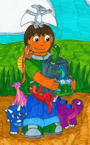Mattias and his Backpack of Dinosaurs – Into the BackpackThe adventure story of how Mattias first discovered he could go into his backpack to Valley of the Dinosaurs. When Mattias’ hat gets dropped in the backpack and disappears, he is nervous about jumping in, but the hat was from his grandpa and Mattias must have it back. At the urging of the dinosaurs, Mattias goes inside and must explore throughout Valley of the Dinosaurs to find his precious cap.
