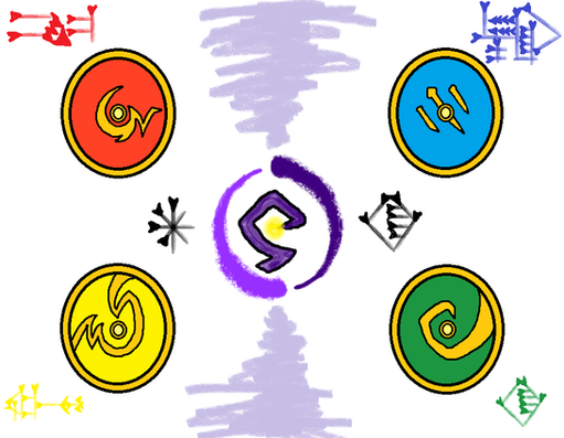 It must be difficult to design elemental symbols. I mean, you're basically looking for a shape to describe something that can take any shape.