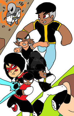 After they joins S.H.I.E.L.D. Trainees of Avengers by Director Nick Fury, Power Pack was founder members with their new friends, American Soldier, Bumblebee, Torunn, Hawkeye, Iron-Boy and Lilβ Hulk, know as the Teen Avengers.