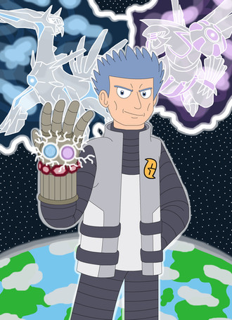 Timespace Gauntlet is a powerful glove in Pokémon universe with Adamant Orb of Time and Lustrous Orb of Space and Red Chaim to summon and control Dialga and Palkia to create a new universe. If Cyrus the evil boss of Team Galactic used it, he is going destroy to recreated world.
