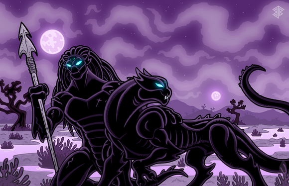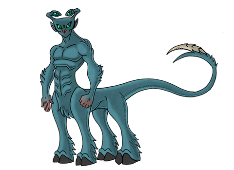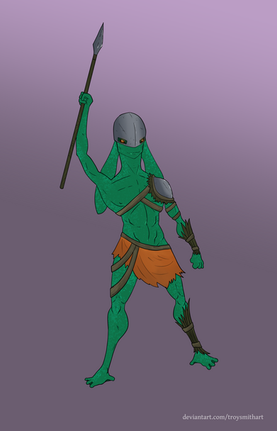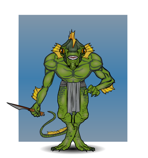 I guess, it's based on this old concept. I made it a bit less human looking, gave it dog's legs, three toes and fingers and beefed up the crest a bit. (The native in the old pic is wearing a bone mask)