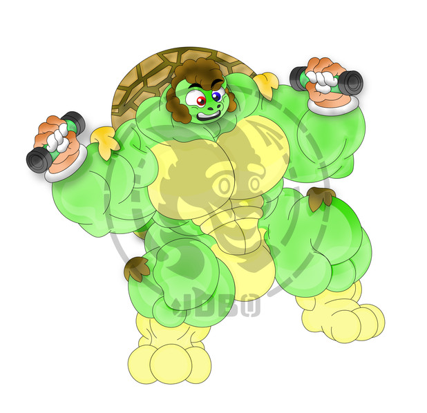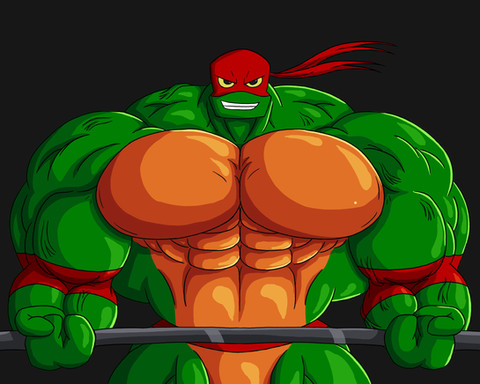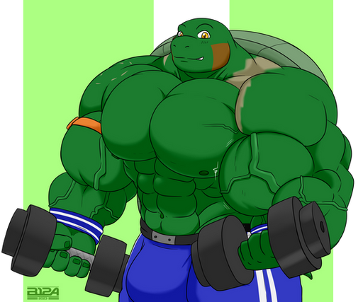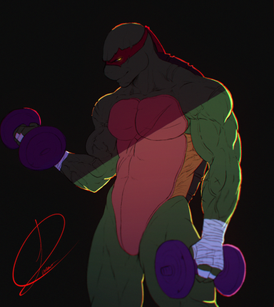 #anthro #biceps #buff #dumbbell #fanart #green #hyper #male #muscle #musclegrowth #mutant #ninja #raphael #reptile #scaly #teenage #tmnt #turtle #workout