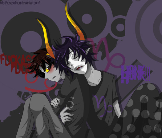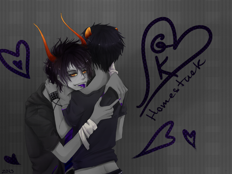 Sweetest ship and the most loved. ^__^ (POSSIBLE SPOILERS)But Homestuck is theses 4 kids get trapped in this video game type tecnology and on thier way to save thier universe and beat the game they meet the 12 trolls. Each troll represents the Astrology signs of birth. The trolls univeres is dying off so they too enter this what they think is a harmless game ends up being a total nightmare and full of hardships. But back to the trolls the color of their blood represents how high they are (or in others words how much a high blood is better and stronger then a lowblooded troll) For instance Gamzee here on the left is one of the highst highblooded troll blood colors but since Gamzee is a special case and dosn't believe in the stupid blood cast and only in his clown religon his best friend and love interest are lowbloods Gamzee sees no difference. And highbloods are stronger and very much aggresive but Gamzee keeps this highblooded nature hidden away in himself by eating a drug called sopor pie with he makes from is bed. And Tavros here on the right is one of the lowest bloods or in other words a discusting gutterblood to most trolls but not Gamzee who thinks he's the most adorable, innocent , cutiepie he's ever met. Tavros is considered week , pathetic and unimportant to all the other trolls but not Gamzee and Aradia- his friend who is aswell a lowblooded troll. Vriska a highblood is very cruel to Tavros and even made him paralyzed the waist down by making him walk off a cliff with her highblood mind powers. But at the same time she has a totally creepy love obsesion for him even though she hates him (nobody likes Vriska because shes a cruel heartless bitch though and tends to harm everyone around her she disabled several others aswell with her mind by making them do things like(SOPILERS) ....Making one troll blind another troll kill his bestfriend and ect..... I hope this has helped you dear lol sorry if I ramble and if theres anything else you'd like to know just ask! (o: