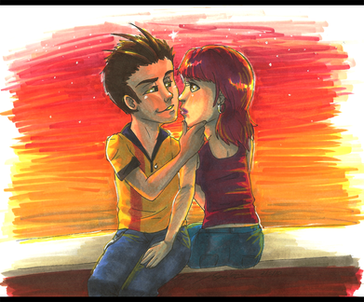 Yeah... I like this ship where there's a guy with a violet color scheme with aquaphobia whose pride can make him come off as awkward or a jerk and his love interest is a fiery girl with an orange color scheme. In addition, the two share several hobbies and interests, and are in some ways the power descendants of some ancient god-like beings.
