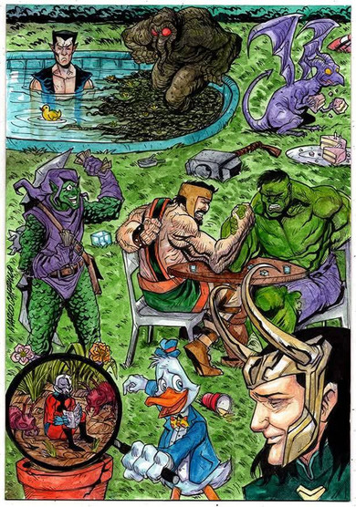 Sure thing, if you like could be a 2 villan vs 2 spideys, i think in spider-man and scarlet spider vs venom and green goblin, you pick uno spider and one villan i make a composition in pen, send to you, every one draw and ink is part and you send me the inks of you part i mix them, and i could put the colors or you. if you like the idea let me know