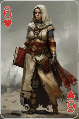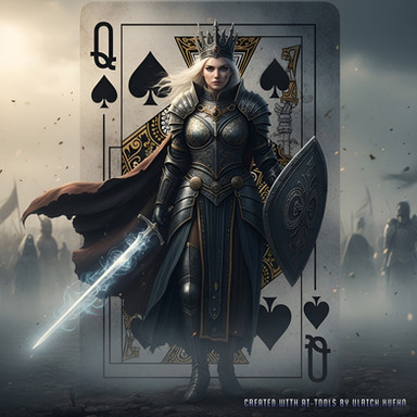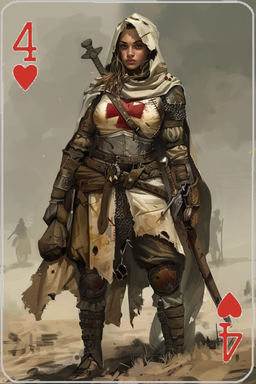 #ai #armor #beautifulwoman #fantasycharacter #fantasyfemale #hearts #medievalfantasy #playingcards #warriorwoman #baddassfemale #armouredgirl