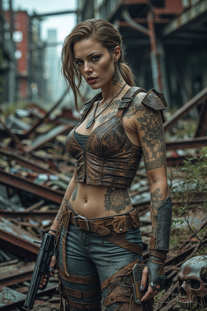#ai #beautifulwoman #goggles #leatherjacket #postapocalyptic #sexywoman #gorgeouswoman #brunettebeauty #futurewarfare #frecklesgirl #wastelandgirl