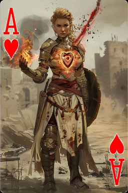 #ai #armor #beautifulwoman #fantasycharacter #fantasyfemale #hearts #medievalfantasy #playingcards #warriorwoman #baddassfemale #armouredgirl