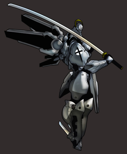This reminds me of Grey Fox and Snake-Eyes mixed up into one mecha ninja.