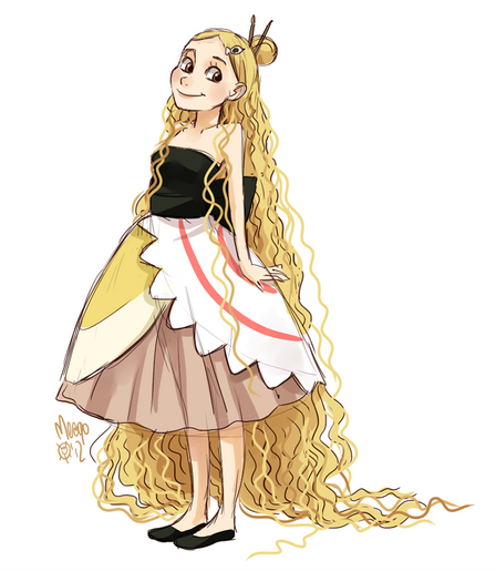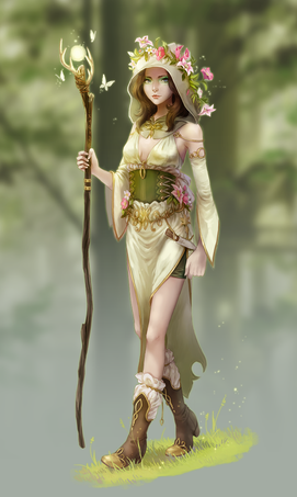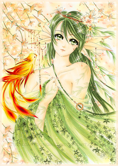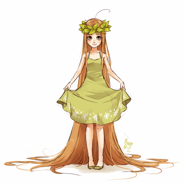 A co do rzeczy, ktore bardziej się podobały. Jako pierwsze muszę powiedzieć, że podoba mi się gama zieleni, która tutaj zastosowałaś ( chcoiaż sama nie przepadam za tym kolorem ). Promienie słońca przebijające się przez korony drzew, tworzące jasne centrum bardzo ładnie eksponują postać, zwłaszczam, że ciemniejsze konary tworzą jakby ramkę. Również to, że zdecydowałaś się na to, że promienie są przed postacią. Nie tylko wydaje się to bardziej prawdziwe, ale także trzeba było pamiętać o tym, żeby uwzględnić to na postaci i rozjaśnić w tych miejscach, na ktore one padają. Poradziłaś sobie. Co do nastęnych rzeczy, to kwiatki są bardzo ładne. Jest ich nie za dużo, ale dzięki temu widać trochę zieleni w postaci liści na górze sukienki. Teraz kolorwanie. Bardzo dobre na włosach i na sukience. Tak, włosy są naprawdę dobrze pokolorowane, połyski i różne odcienie sa świetne. Większe pasma włosów oraz mniejsze kosmyki na dole zdecydowanie lepiej wyglądają. A fałdy na sukience bardzo dobrze, że są zaznaczone przez cienie sukienki, a nie linie.