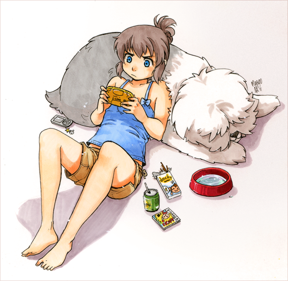 I am really sorry!! After I've submitted that, I realized that there was already a pose like that. I made the character in that pose since she play Nintendo DS sometime in the anime and my first pose idea was an epic fail and used this [link] pose of Anaru, a character from the same anime instead for reference. Please do forgive me! I never intended to be an art thief.