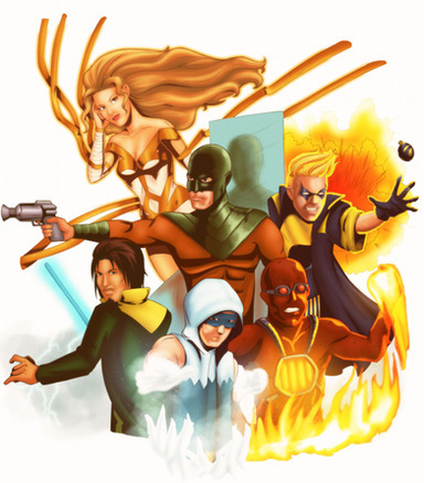 Well, it's not really a comic. It's written stories, but we have art tie-ins (and some comic pages). The heroes are all regular character with no super-powers. Except Resin. He has a super suit which gives him super-strength. Though, he's a scientist, thus his logo.