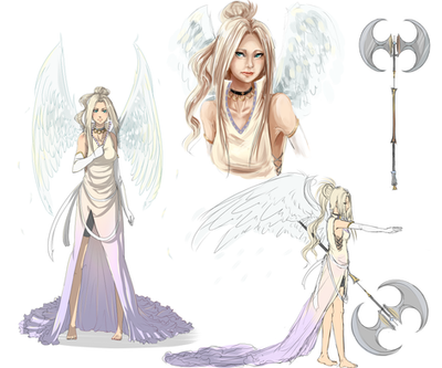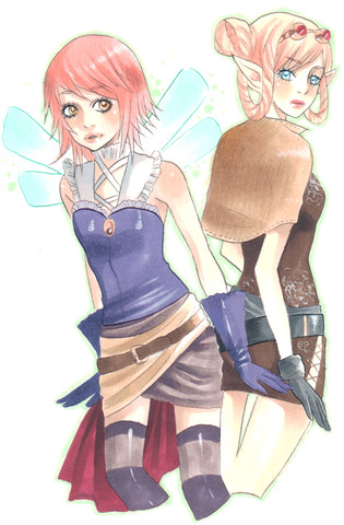 Another note, I absolutely love the girl on the left; she's so pretty, and that dress is lovely ^o^ The winged girl on the right is also cute and looks like she has some spirit to her