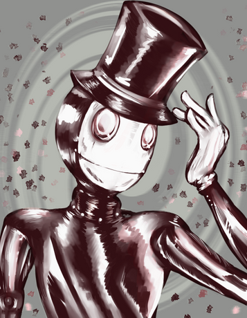 Man, this whould be a great character for a game or a TV-show, or a game based on a TV-show. Even if he has no mouth he looks like he whould smile. He whould cross the main characters way a lot of times to help him and in the end it whould turn out that he was pulling the strings from behind all the time! Oh, and I like the hat.