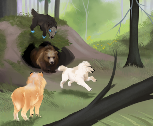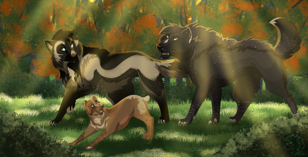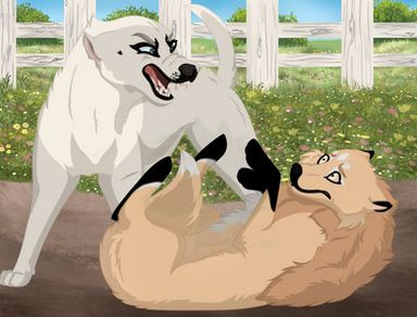 Anyway yeah, these two wolves, are two memebers of the Scarletscythe pack. The grey one is the female-her name is Copperfall, and then the male is Hollowoak. I am happy with them.