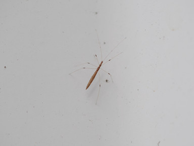 This is a very strange looking bug (Berytinus minor), don't know much about it though. Other than it feeds on the Fabaceae plants (such as trefoil) and overwinters as an adult.Related content