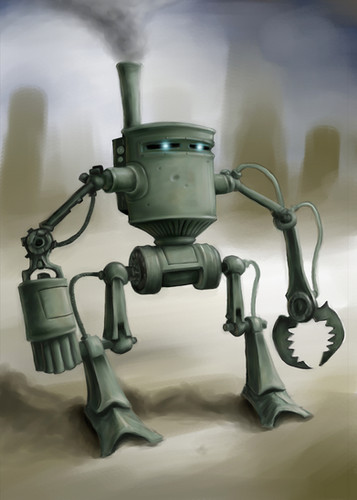 His Name is Rig. I recommend full view. My favorite part is the steam vents, there is some distortion there...His complexity makes up for his slightly wonky perspective. This is also the longest ive spent on a robot so far.