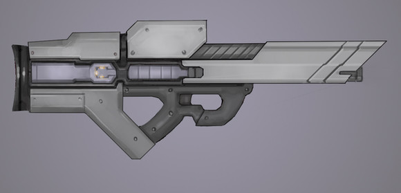 Here's a concept for a modified bullpup auto sniper rifle. Though thats a mouthful, it explains the different style design. I imagine that most of the gun is housed in a plastic case with a polished metal skin. Purely for aesthetics.*Not from an actual game