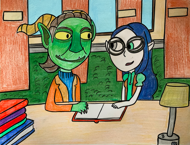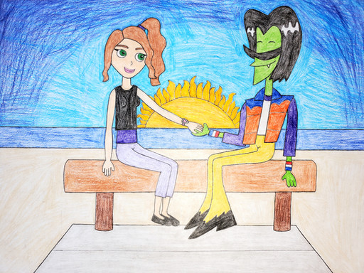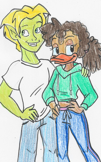 Another drawing that will be used as a photo in an upcoming project.College-age Mags and Krankcase hanging out in a park.