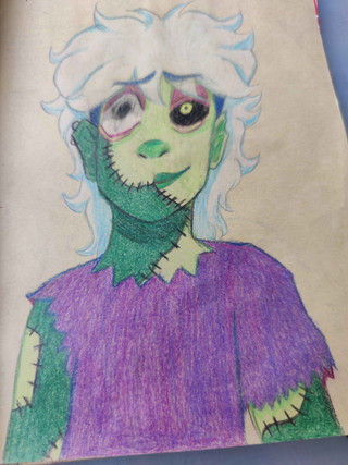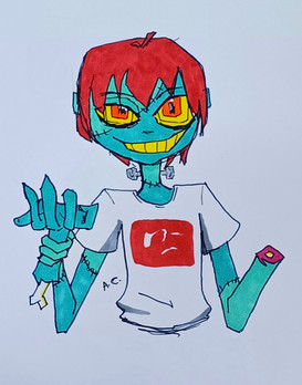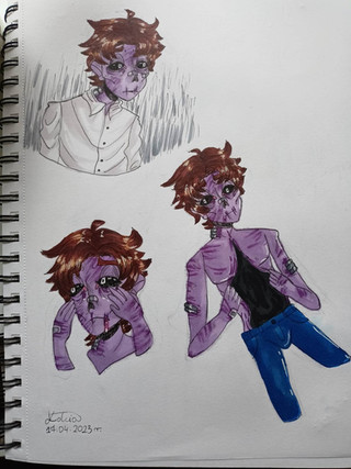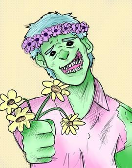 So, here is something peaceful. Dr. Krankcase lying in a field of tiny flowers, relaxed, with his hair sprawled out. I also made this in the form of a polaroid aesthetic to add to the vibe.
