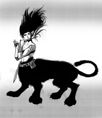 Hello! This is Adam's girlfriend. Adam does not want to post this picture, but I like the lineart he drew here. So, I am being sneaky (i.e., he is sitting next to me complaining).I tried to get him to color it, but he didn't want to, so I added a few colors. XD