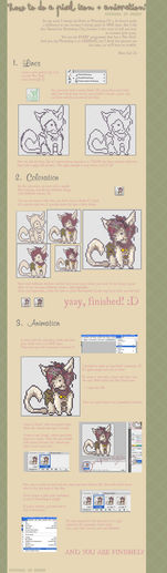 Since I've been getting asked a lot about how I animate my pixel arts, I figured I'd make a tutorial about how I do it. This tutorial only covers Adobe Photoshop and Adobe Imageready, but if you have any similar programs, you may be able to tweak this a bit to fit your program a little better.