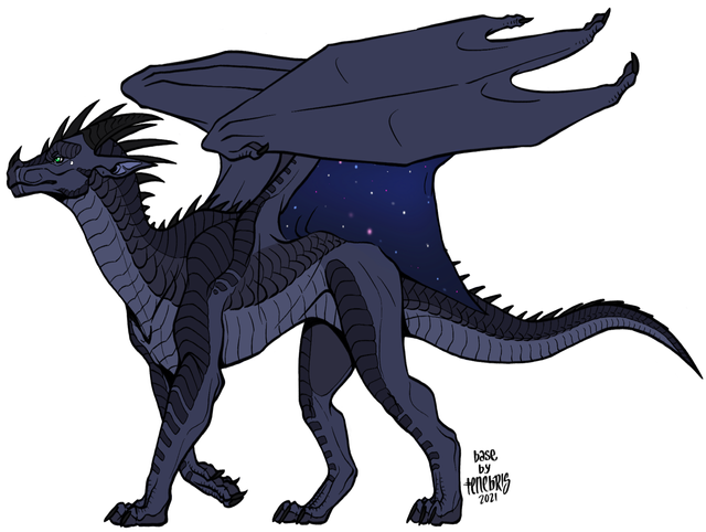Tried using the NightWing base by Stood#4936 to remake my favorite character's ref. Normally he'd be a NightWing-MudWing hybrid, but I wanted to try turning him into a pure NightWing, so I started from the ground up with some inspiration taken from his original ref and vualá!Character summary: