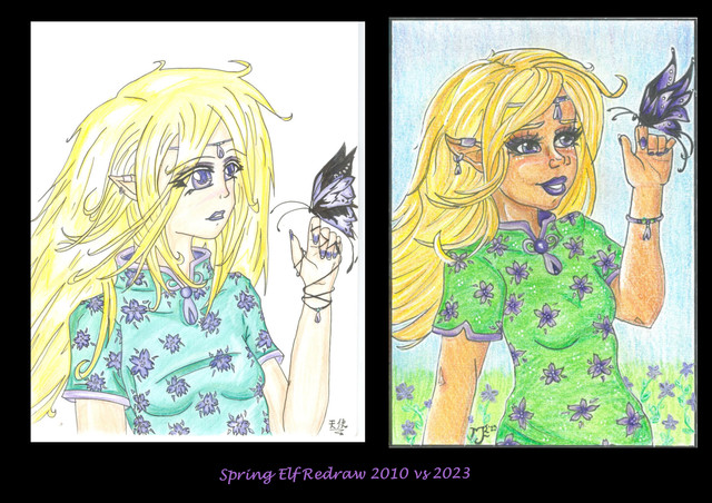 While being an au pair 3 years back I learnt all the disney characters, from princesses to fairies and one day I was inspired by one of Tinkerbells friends. made the face my own but used the flower and outfit.... hands are bleh but I love how the wings turned out. Done during a phase in my life where if I did one drawing in 3 months I was luckyRelated content