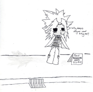 A hornball? XD XD Now I have an image of a ball-chibi Marik....or a beanie-chibi Marik rocking to and fro singing that song. >_>"' XD But isn't there a little Marik hornball in all of us? XD