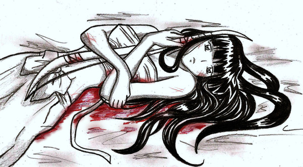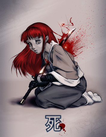 My friend made me a Samurai X AMV and I fell in love with it. Very good quality with the music from Metallica. But anyway, i stopped it at one point and saw Tomoe dying in Kenshin's arms and it made me really depressed (although fan of kenshin and Kaoru). She looked really beautiful when she was dead....((sorry everyone) but yeah so I decided to draw her.I did this a few years ago so ...its kinda sketchy and theres mistakes here and there but excuse it. onegaishimasu. XD