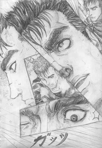 using photos and a bit of coloring in photoshop, i managed to render a page of the awesome manga 'Berserk' by Kentaro Miura!the original image could be found in Volume 23