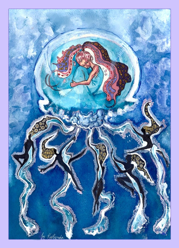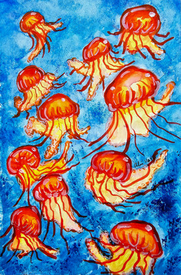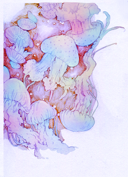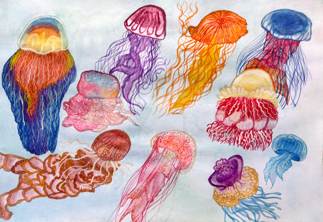 for my drawing final, i had to fill a sketchbook with one subject. i chose jellyfish. this was the final result of all that prep.20x30 colored pencils and pastels
