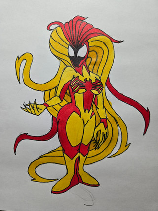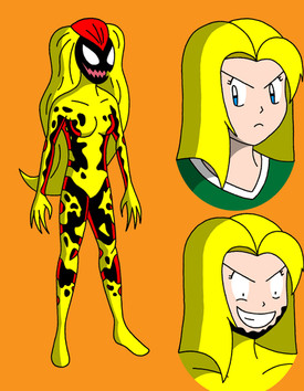 This is a new form that Sally discovered she was looking through her new Saviortrix, a divine version of the Onmitrix. This is a synthetic version of the Scream Symbiote, for it has no desire to control Sally. It can with new features like, wall crawling, web-slinging and spider senses. She also comes with gold-infused webs, Shining Speed, and super- enhance tremendous strength that makes her one tough and a powerful hero. Shining Spider can make weapons from her hands, her favorite one is the Shining Blade of Justice, which is her long bladed arm that cut even the most toughest of armors. And last but not least, She's immune to vibrations that means she'll won't be bothered by any vibrations by any device anywhere. Unlike Scream herself, She's kind-hearted and well-respected hero of the light that won't stop until every single criminal has been sent behind bars.Well, I hope you like her!
