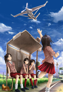 ha ha ha! i totally wanted to ask you how the three of them fit! you're too bad! nice piece! it reminds me of tenchi muyo and outlaw star, just feel good sci fi where everything was an adventure and not the end of the world