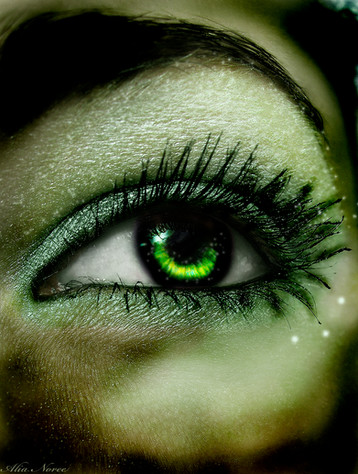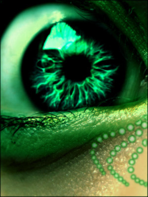 Ah, but I like how the green seems to glow alomst, and looks a bit like its in a liquid state in the iris. The green around the eyes seems too much; though, that's my opinion. I still love the iris <3 :3