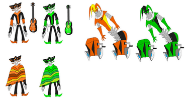 the second one is a music themed mafia switchroid with the breath of the wild guardian arm that allows him to summon any tool from the breath of the wild game has is guardian form and the the Crypt of the necrodancer's golden lute switch arm that lets him play any music from nothing rather it be a maraca, a guitar, or any instrument.