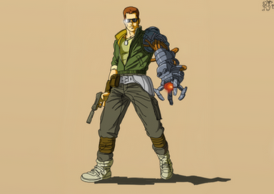 My father is a big fan of the NES game, Bionic Commando. And he's been suggesting that i draw a picture of the titular hero, Bionic Commando. Then he started asking that i drew a picture of Bionic Commando. Then he started demanding that i drew a picture of Bionic Commando.About a month later, i drew Bionic Commando.