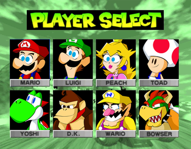 I made this for Chris-Musume-The-WW 's idea known as Mario Kart 64-R Deluxe. Here's a list of players to choose from.: Plus, it's made with ConnorRentz 's Roster Builder! What do you think?