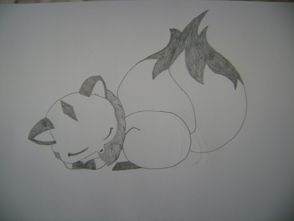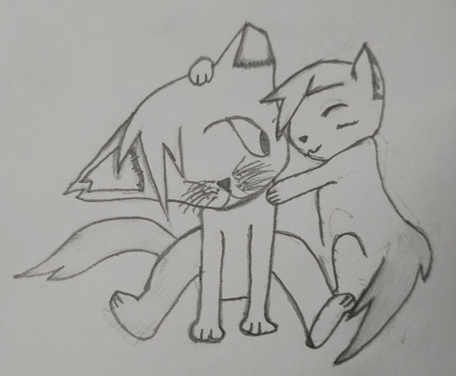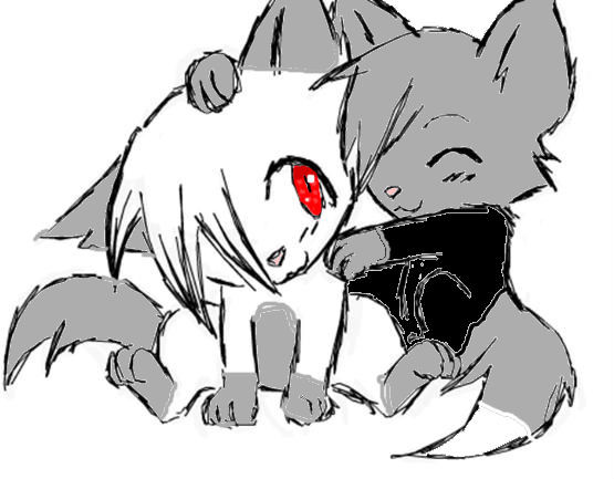 ~ An inked anime sketch of two chibi wolves hugging, thought it was quite cute