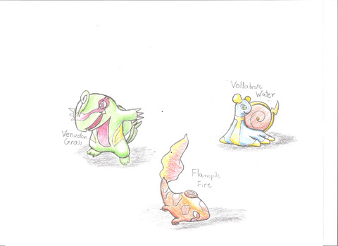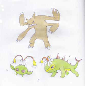 Sooooo, you won't believe how i got the idea for these guys. it was from a dream i had a few days ago, i was looking for insects to feed my venus fly trap. one of them happened to be a blue and green insect with sturdy purple legs. i went looking for more bugs and i see a HUGE one behind the bed of my guest room (the fakemon on the right). i try feeding them to my venus fly trp but the plant won't eat them. i told my friend about this dream and he automatically knew it had to do with pokemon 0_0. Part 2 of the dream was i was in a naval base, i was the only human and everyone else was either a buizel or floatzel 0_0. Minor changes were made to these guys.Springsect (spring+insect)