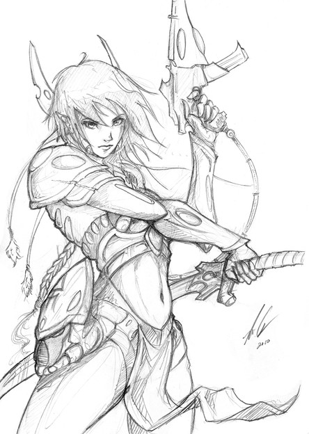 Commission for of her character Kirisuto. I've drawn her a million years ago with a different design. She was redesigned to fit a post apocalyptic setting with zombeeehhhs.Pulled a little inspiration from gears of war locusts. Because all the reasons.