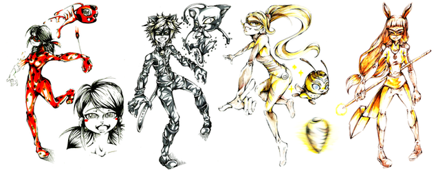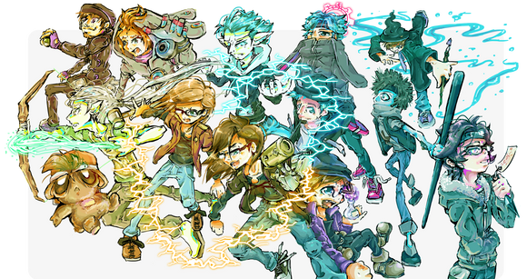 We’ve got Odd with a kind of urban/roughed-up look and bleached hair (it was either that or a non-binary kind of character, which I’m keeping as an option), Yumi as more of a social justice warrior (which I think is like the modern-days equivalent of the goth character trope), Ulrich with a darker skin tone to add diversity and because I thought it could be interesting to work with a bi-racial kind of character (especially regarding what this might imply with his relationship with his father), Jeremy wwith a more current “nerdy” look including a hoodie à la Mr. Robot and Aelita with a more absent and boyish look, to reflect her original aspect as an AI. I liked adding her traditional pompons to an accessory (her bag) instead of her outfit.