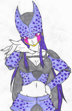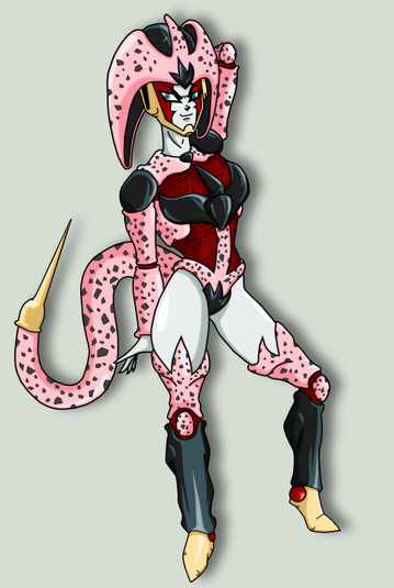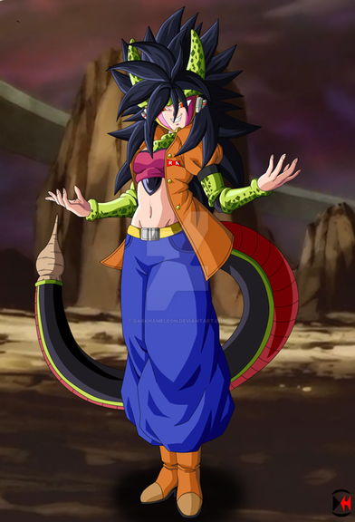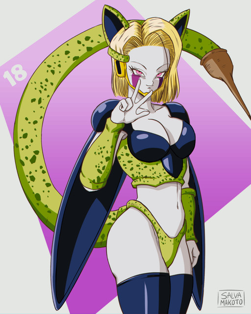 Imagine this: Android 18 with similar absorption abilities as Android 21. Β Upon absorbing Cell, he not only becomes a part of 18 but transforms her with body armor and a tail for absorbing future victims.Background is landscape used from the Dragon Ball Z anime.