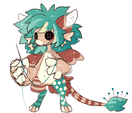 She's gonna be a sort-of-familiar of a witch character I made recently who ripped the soul out of a girl and shoved it into the plush, erasing all her memories other than the fact she used to be human. When she came to, the witch told her she found her like that, and that she'd help her find who did it and get her memories back. Stitches blindly follows her, believing that one day it will lead her back to her memories and her old body.