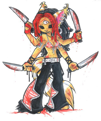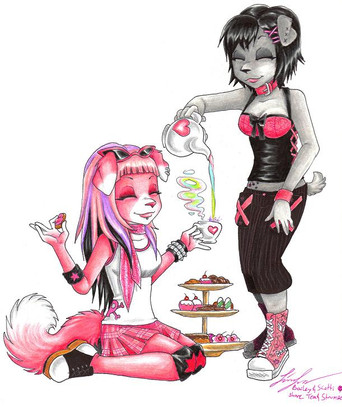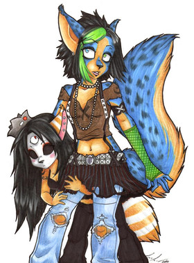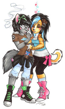 o___o Ghahh. Those eyes are burning holes in my retinas. **giggles stupidly** My god, I love your coloring and style! Tummy. **poke poke, more giggling** I am in love with Waffles' hair! o.O Wow, them's cool shoes. Word.