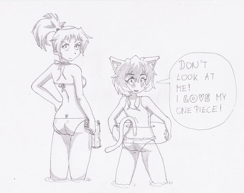 she's embarrassed because of something, she has nothing wrong with her swimsuit