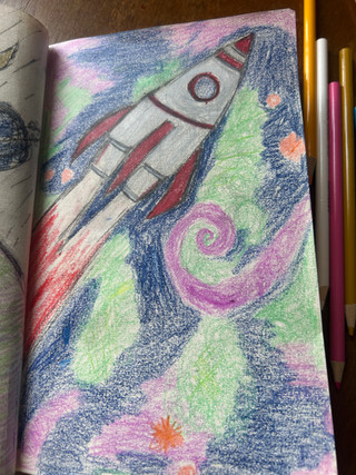 #blue #red #sky #yellow #launching #rocket #space #spaceship #stars
