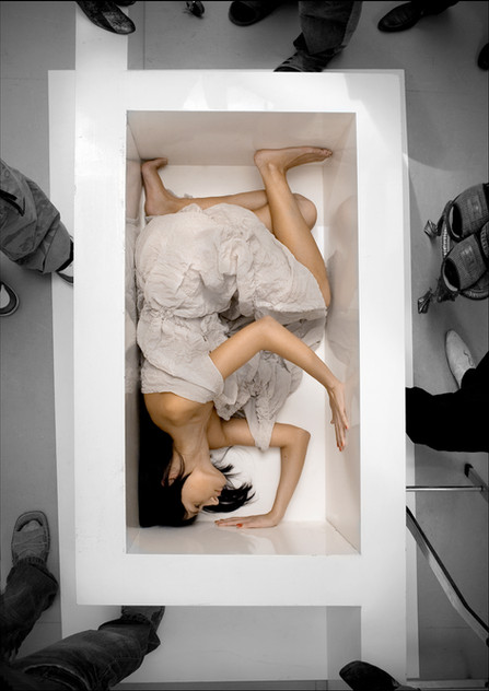 The only things I might change is either the position of the hair or the right arm and the visibility of the vertical joints on the back wall. You can see the horizontal joints in the corners but the lack of vertical lines and the reflection at the top of the side walls makes it look like it was shopped.