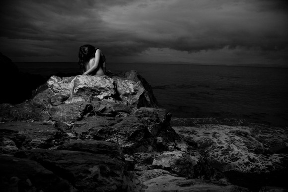 Lovely photo. I love the shapes of two contrasting models, with their soft skins, on the hard rock.
