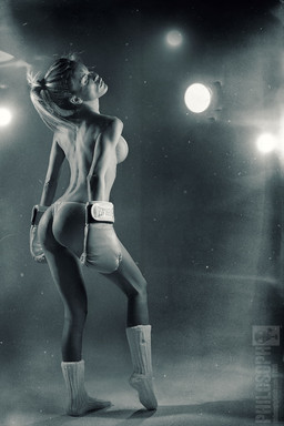 This Picture brings me an air of antique and vintage, like saying, ''well im a fighter'' and i just love it, you have an amazing body and the concept of this picture is just lovely, i love this frontal picture, you are a beautiful woman, everything is perfect here, i totally love it, is amazing the pose almost seems like youre tired but not giving up, like relating it to the real world, and your body, oh my gosh that body, nothing much to say but perfect i love it, and you should keep doing this is amazing and you make it better everytime.
